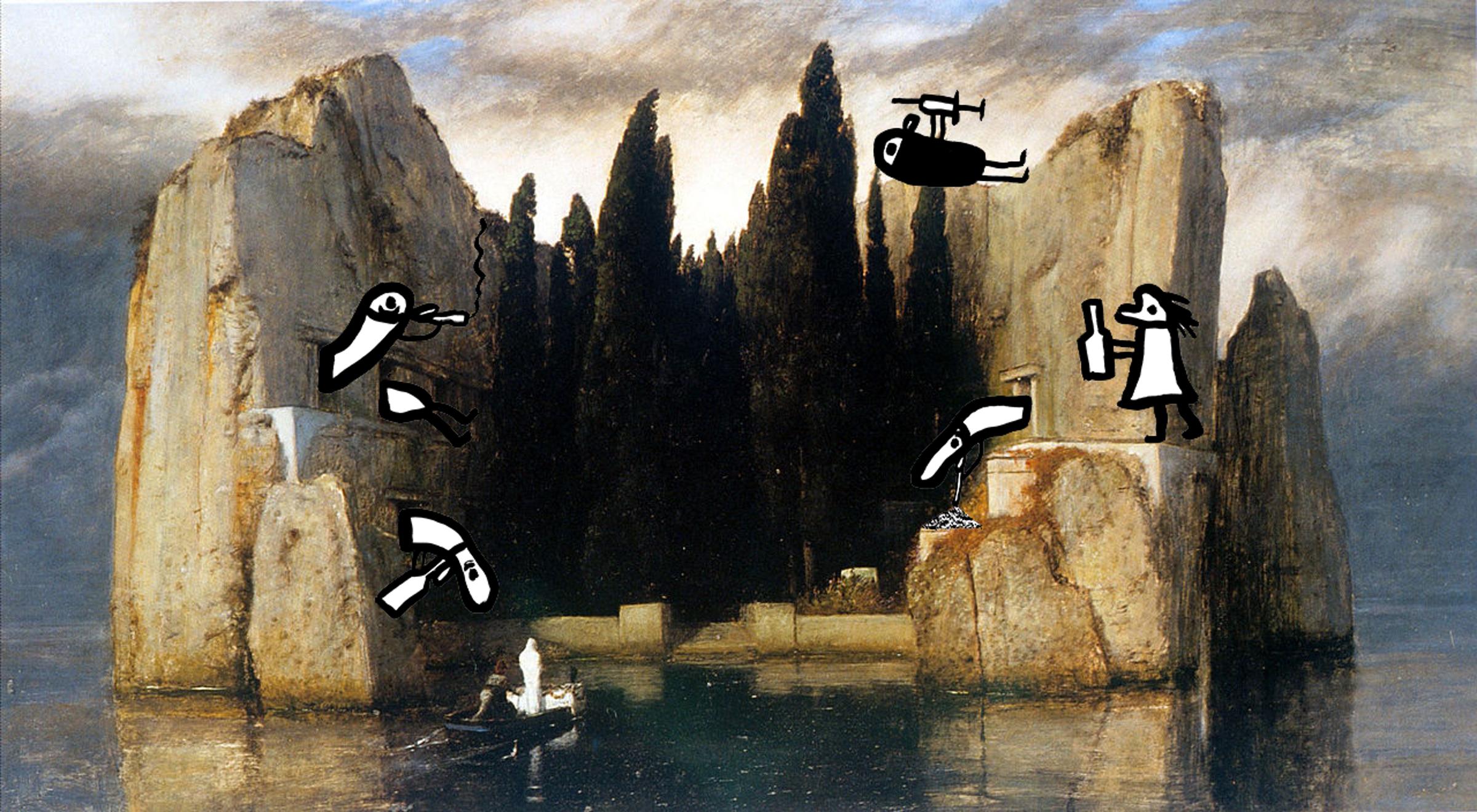 14Obraz namalował Boecklin. Nosi tytuł Wyspa umarłych, co dodaje perspektywie śmierci szczyptę okrutnego humoru.