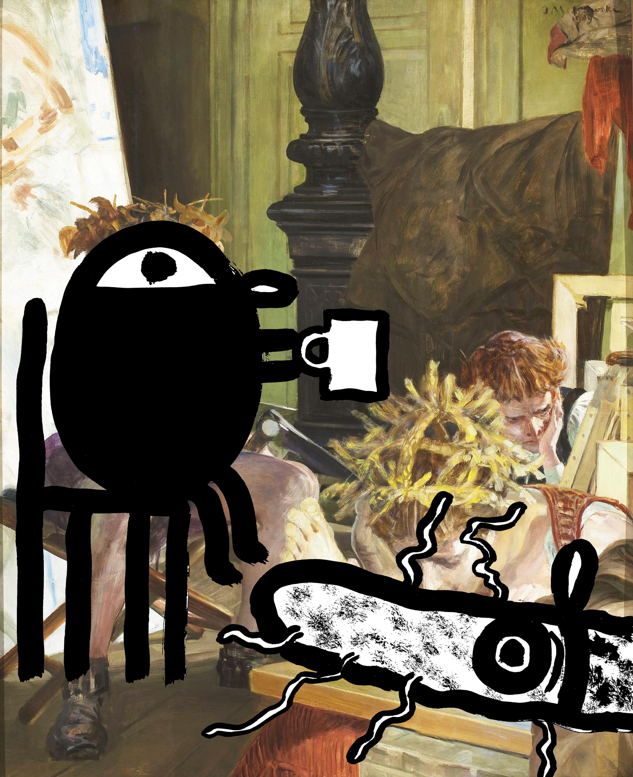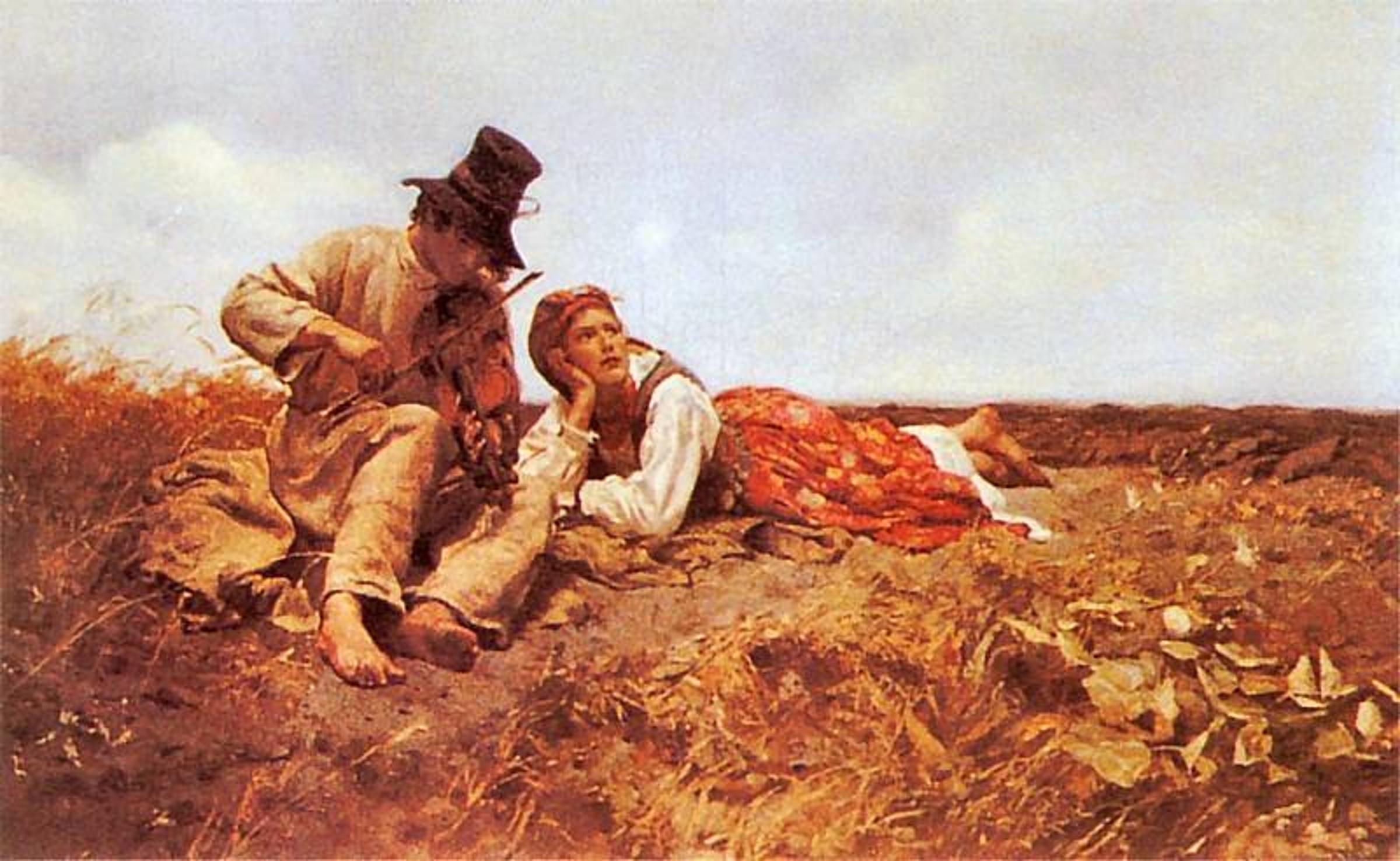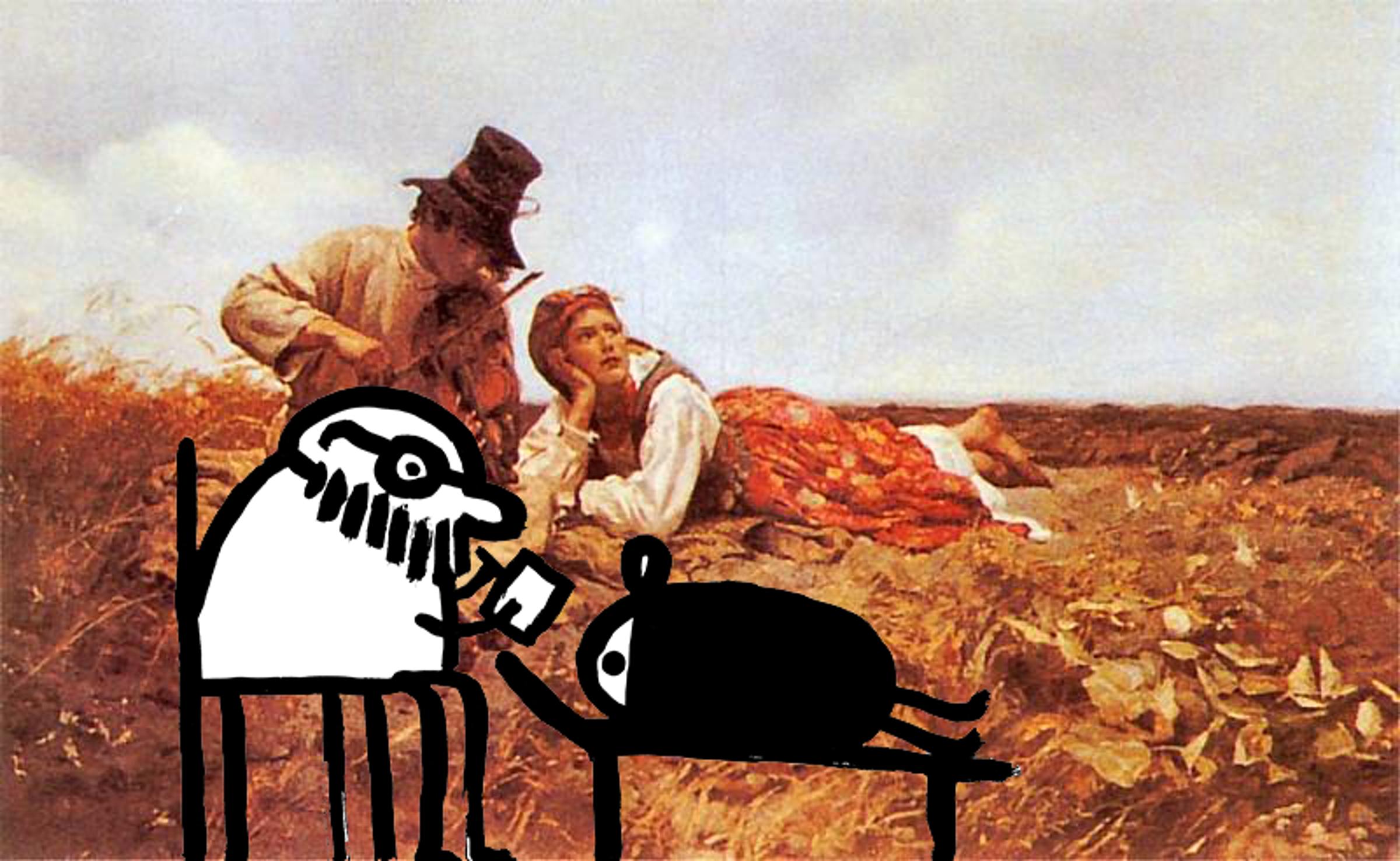 59Karambol najchętniej raczyłby się wódeczką, sam jednak uważam się za piwosza — chce walić naftę, niech wali za swoje. W ten sposób osiągamy kompromis. Biorę dwa kuflowe, wciskam w spodnie. Karambola chyba parzy ta puszka. Nie skręcamy na skwer przy Brzeskiej, gdyż siąpi, co bardzo martwi chorowitego Karambola. Mijamy sklep z antykami, którego właściciel należy do najstarszych eksponatów.Połowę wystawy zajmuje kopia Sielanki Chełmońskiego. Dziewczyna leży na brązowej trawie, a chłopak leniwie smyra smyczkiem po skrzypcach. Zaraz huknie, niebo splunie deszczem i tych dwoje popędzi do stodoły, gdzie on zdejmie z niej mokre ubranie. Chełmoński to był gość, nie nadęty frajer jak nasz Kutavaggio. Wiedział, o co chodzi w życiu.