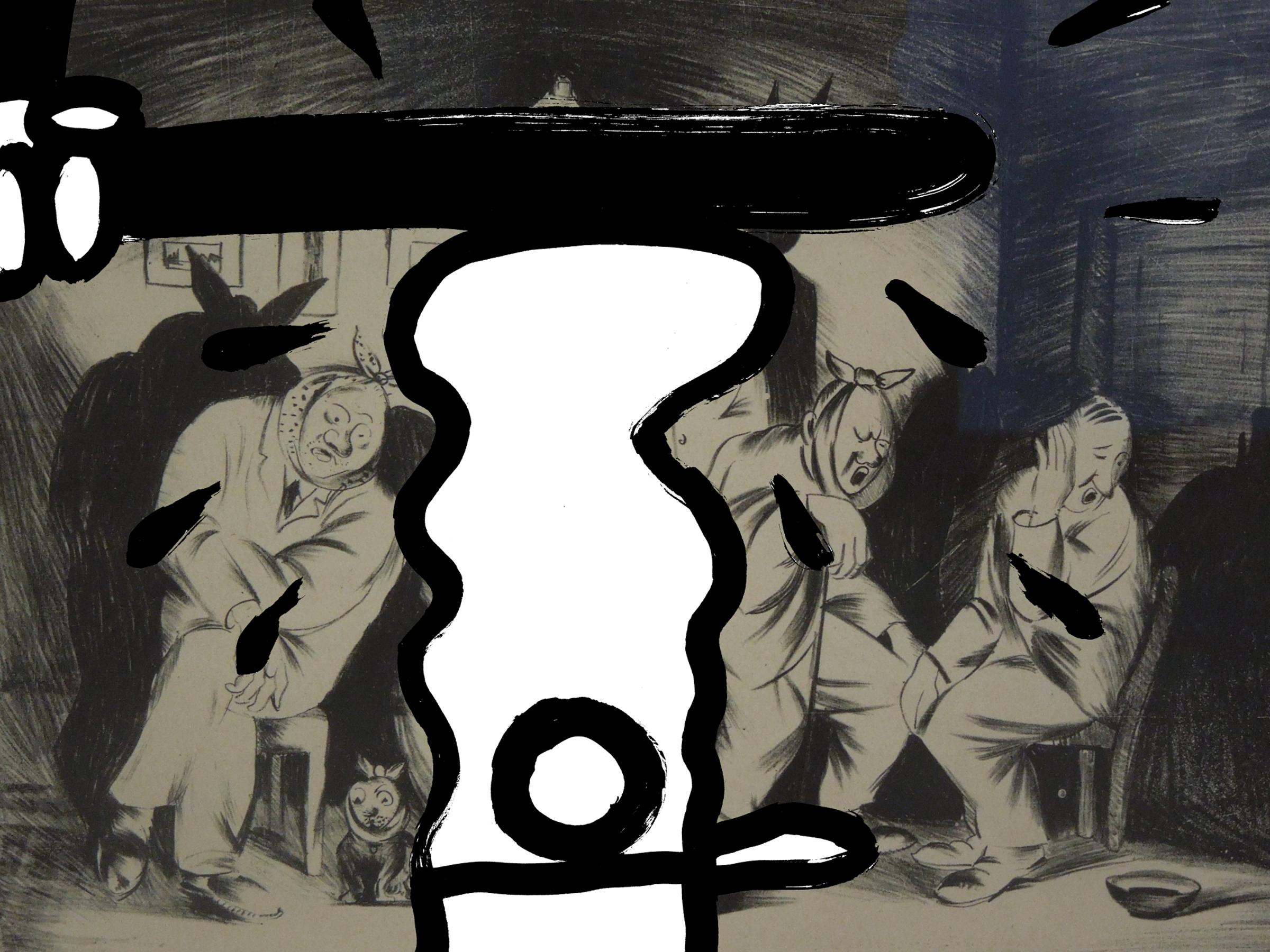 6Sukinsyn wali mnie z łokcia w nos, chwyta za uszy i uderza moim łbem o obraz zawieszony na oślepiająco białej ścianie. Widzę skalistą wyspę pełną grobów i łódeczkę z trumną dobijającą brzegu, a potem słychać wybuch, jakby orkiestra strażacka wlazła na minę.