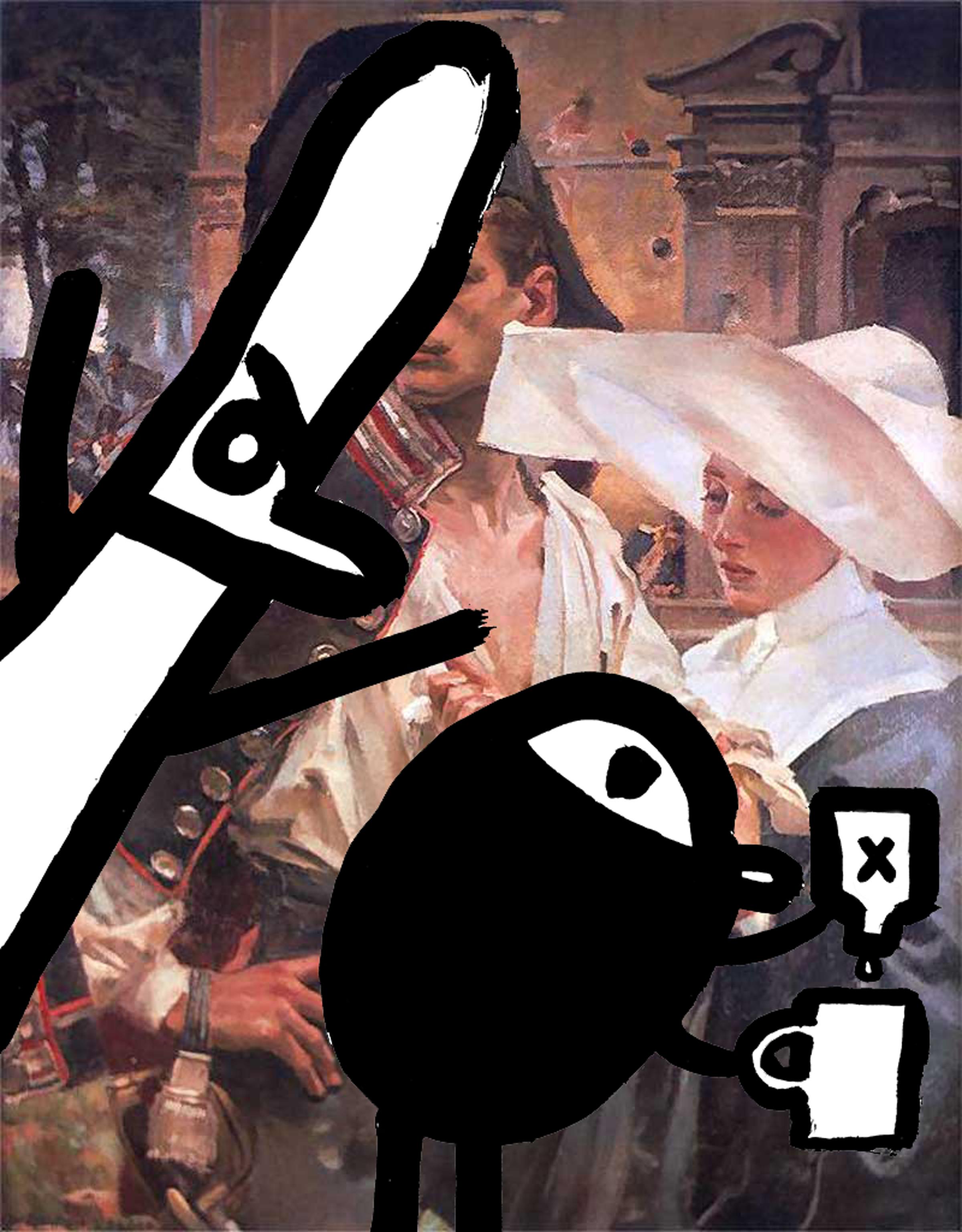 573Przychodzę. Witam się z mamą i Krystyną, pilnując kolejności. Jednej przynoszę czekoladki, drugiej, po staremu, szlugi i wiśniówkę. Staruszka-złodziejka chciwie patrzy w ich kierunku. Wyciąga rękę i zaraz ją cofa. Mamusia mówi jej, żeby uważała. Przypomina, że w sekundę rozłożyła potężnego chłopa, więc bez problemu poradzi sobie z raszplą o lepkich paluszkach. Staruszka-złodziejka mało nie nakryje się kołdrą. Kryśka polewa mamie wiśniówki. Ta odwdzięcza się ptasim mleczkiem i czekoladkami. Spotkanie zyskuje na uroku za sprawą taniej kopii Kossaka Siostra miłosierdzia na linii bojowej pod Warszawą. Czuję się, jakby Kutavaggio siedział tutaj z nami. To nie jest miłe wrażenie. Zaczyna się paplanina.